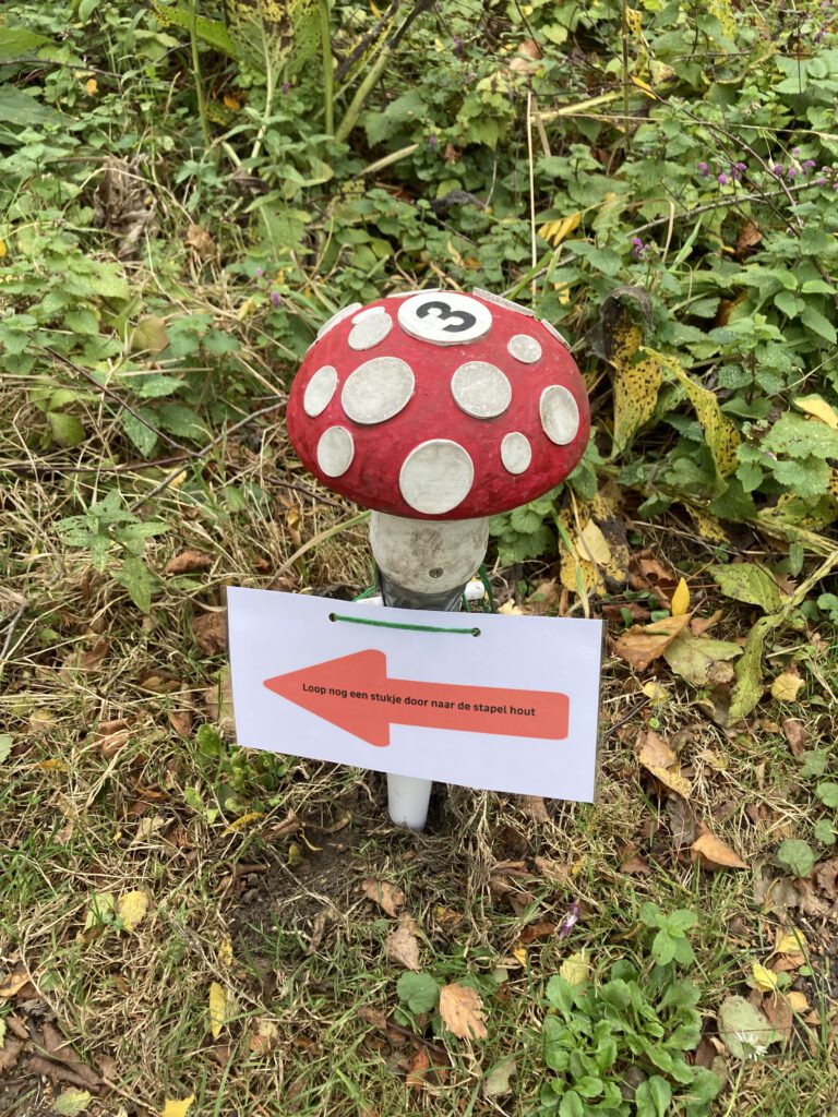 Met zeven grote paddenstoelen onder mijn arm, loop ik door het herfstige park. De zon belicht de geel-oranje bladeren en doet de regendruppels schitteren op het natte gras. Ik kijk goed om me heen naar geschikte plekken om de paddenstoelen in de grond te zetten. Het zijn namelijk geen echte…maar routepaaltjes in de vorm van rood-witte vliegenzwammen. Ze zijn bedoeld om de opdrachten van onze nieuwe herfstexcursie te markeren. Nog maar een paar dagen en de basischoolklassen staan alweer voor de deur van ons duurzaamheidscentrum om uitgelaten het park in te rennen en onze excursie te doen.
