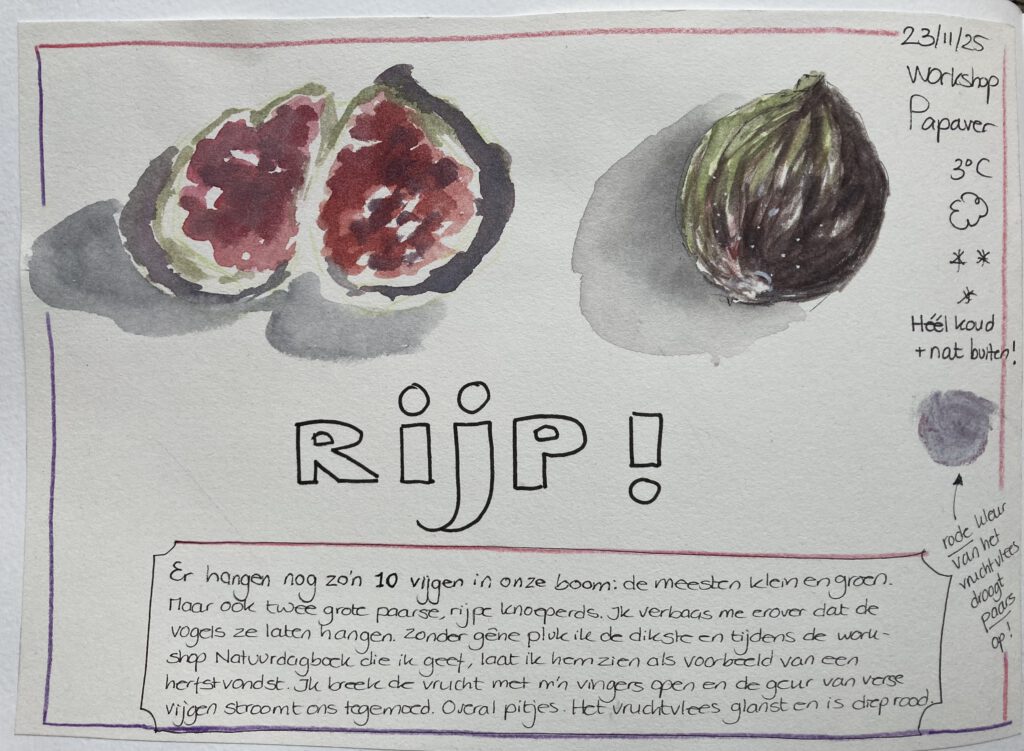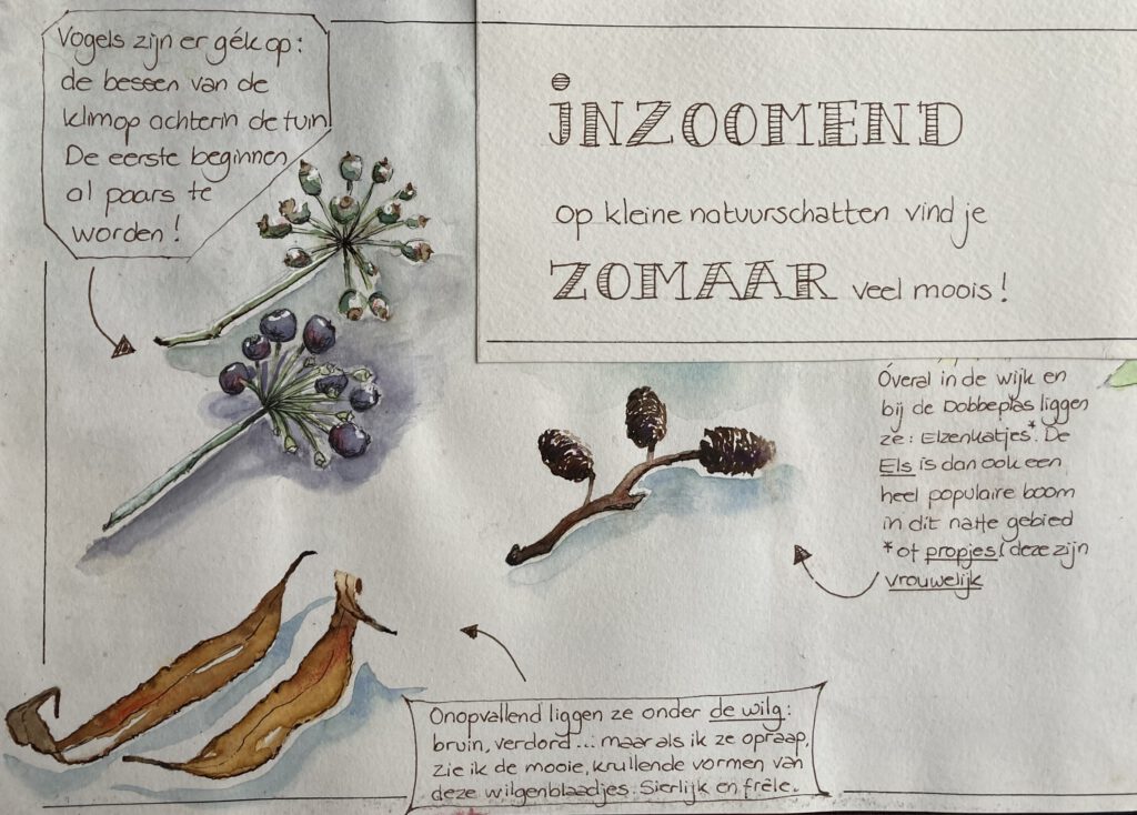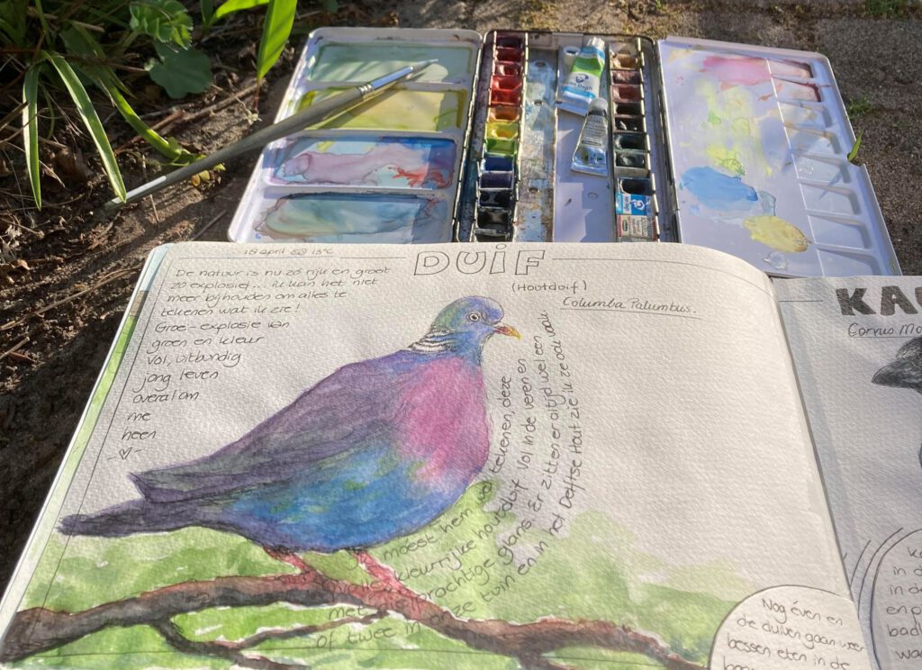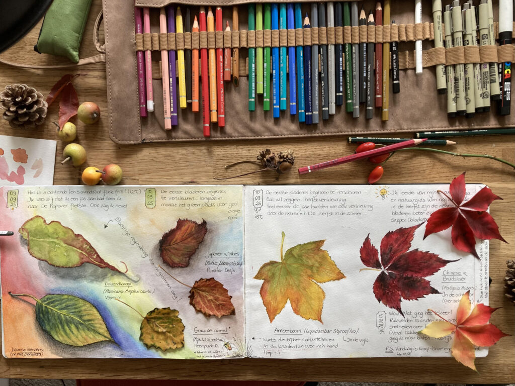 Hoe ziet een Nature Journal eruit? Hieronder zie je pagina’s uit mijn Nature Journals. Bij Nature Journaling is er overigens geen goede of slechte manier: iedereen heeft zijn of haar eigen stijl.