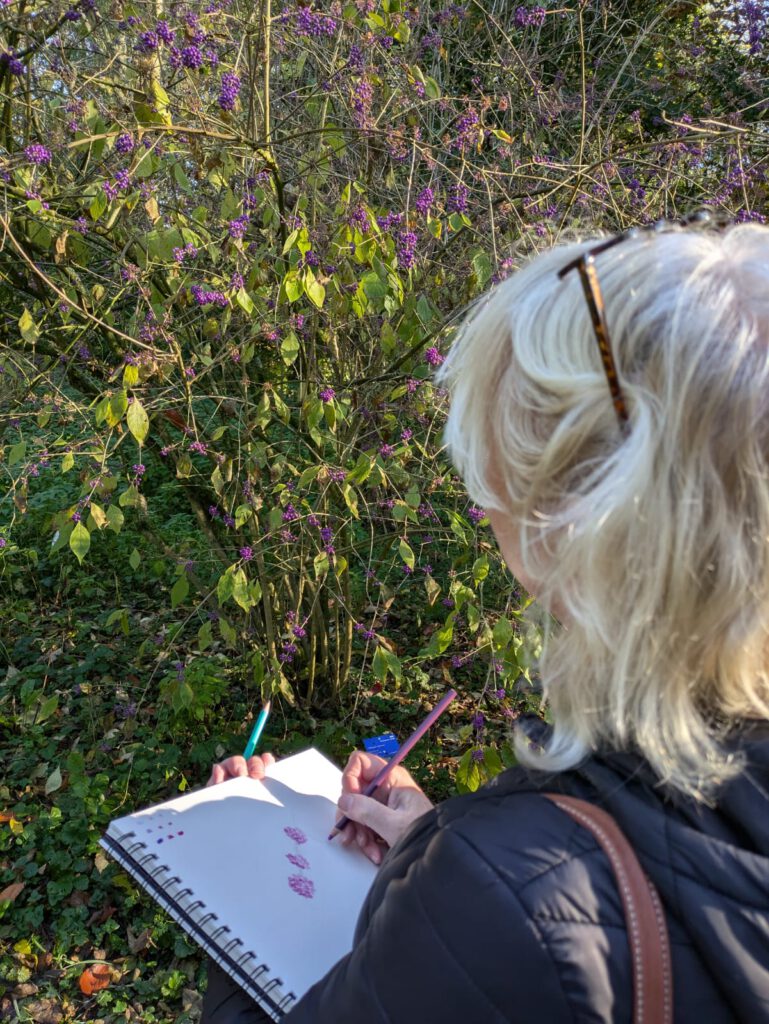 Verschillende zondagen per jaar begeleid ik samen met kunstenares Norna Ross workshops Natuurdagboek maken voor beginners: na een klein stukje theorie gaan we gelijk naar buiten om te oefenen met observeren en écht in het nu zijn. Norna en ik geven je tips om je indrukken goed op papier te krijgen. De workshops maken onderdeel uit van het activiteitenprogramma van duurzaamheidscentrum De Papaver en vinden plaats in de zintuigen prikkelende kruidentuin of in de prachtige bomentuin/Heempark Delft.